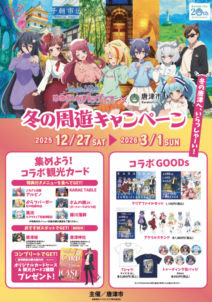 佐賀のご当地アイドルとして奮闘する、新感覚ゾンビアイドル系アニメ『ゾンビランドサガ』。その劇場版作品『ゾンビランドサガ ゆめぎんがパラダイス』の公開を記念した「冬の周遊キャンペーン」が、12月27日(土)よりスタートしました。