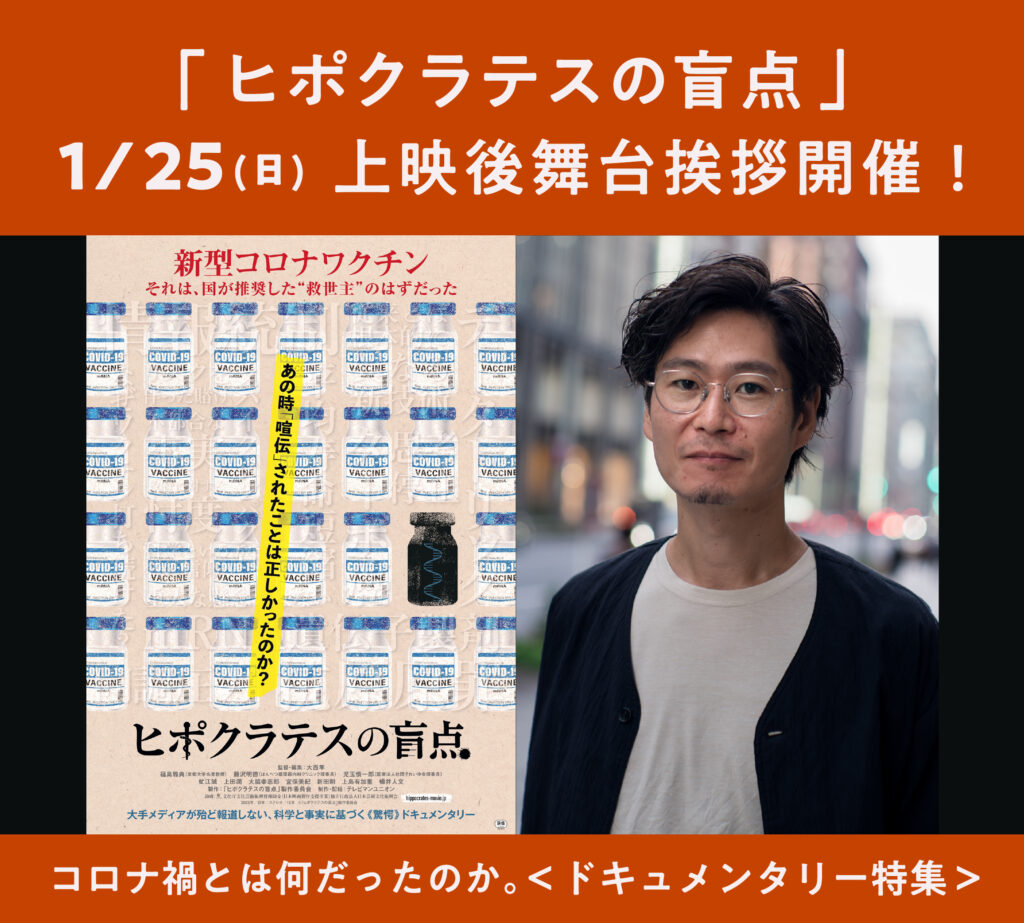 大手メディアが殆ど報道しない、科学と事実に基づいた《驚愕》のドキュメンタリー映画『ヒポクラテスの盲点』の上映を記念し、大西隼監督の舞台挨拶が決定しました!