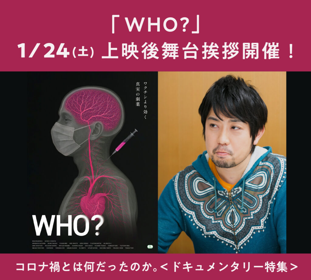 コロナ禍の光と闇を描いた異色ドキュメンタリー映画『WHO?』の上映を記念し、なるせゆうせい監督の舞台挨拶が決定しました!