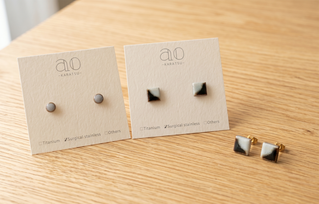 ピアスやブローチ、ヘアアクセサリーなど、唐津焼を“身につける・持ち歩く”かたちで楽しめるアイテムが揃います。デザインもプライスも手に取りやすく、はじめてのやきものにもおすすめ。今回は、そんな“かわいい唐津モノ”を中心に、KARAEならではのセレクトアイテムをご紹介します。