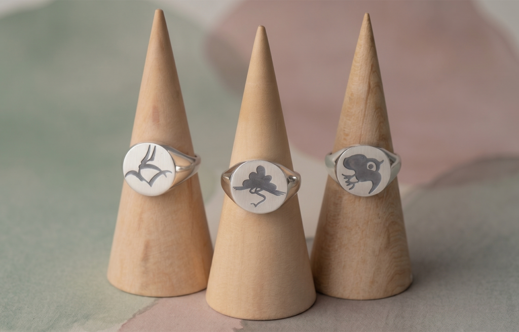 今回新登場したのは、唐津焼の絵付けをモチーフにした「絵唐津リング」。すすきや松、ちどりなどの唐津焼の伝統的な文様があしらわれたアイテムです。