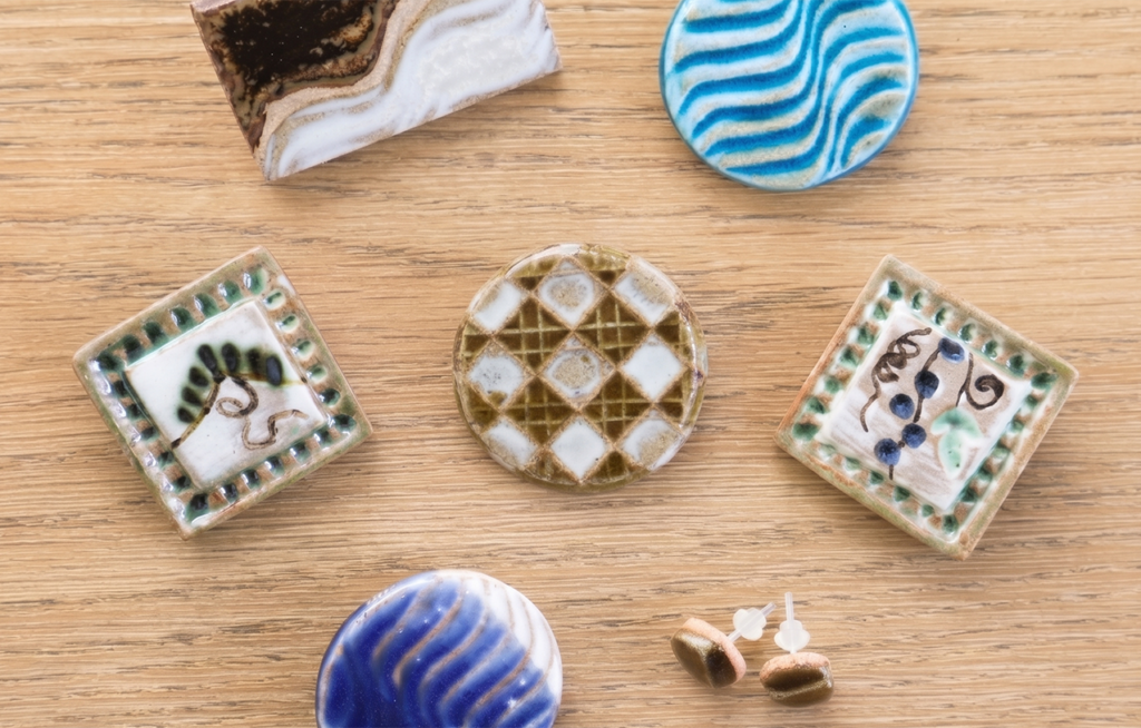 そんな由緒ある窯元から届くのは、ブローチやポニーフック、ピアス、イヤリングなど、気軽に取り入れられるアクセサリー。伝統的な釉薬や絵付けを活かしながらも、モダンな表情を楽しめるアイテムが揃います。ぜひお気に入りを見つけてみてください。
